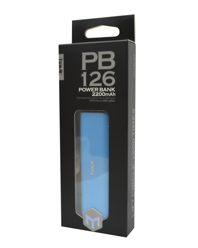 CARGADOR PORTATIL USB C/CABLE 2200MA AZUL - HV-PB116BL