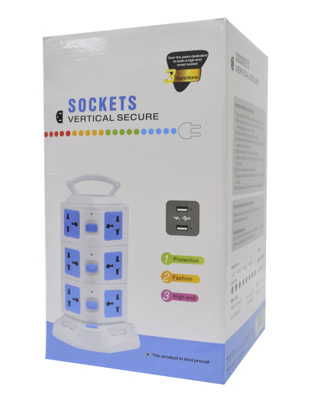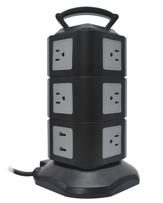 REGLETA T/TORRE 2 PISOS/7 TOMAS/2 USB BLANCO 1.7MT - EV-2L2U-BK